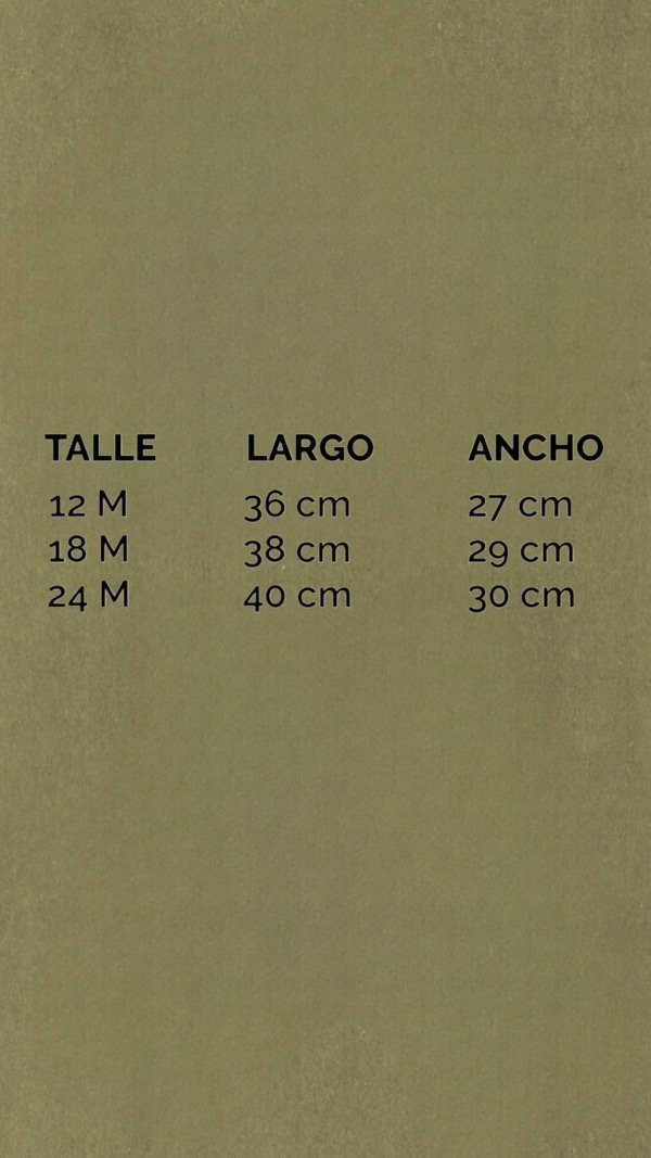 Talles disponibles: 12, 18 y 24 meses.
