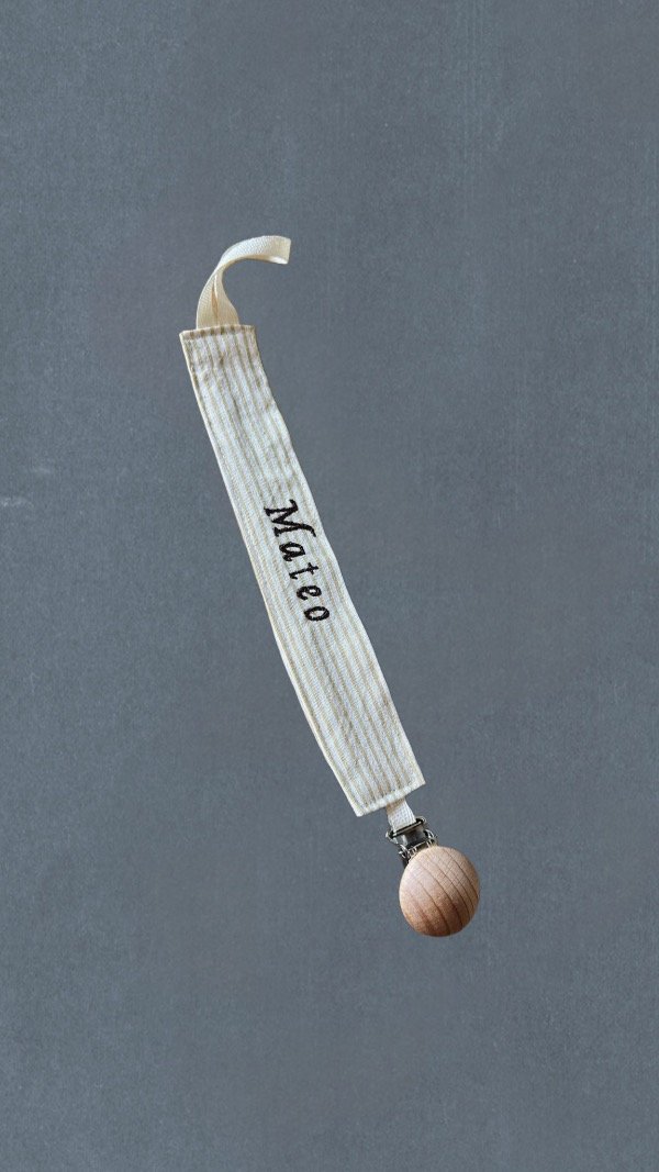 Portachupetes personalizado con el nombre de tu bebe, opcion bordado a mano con gancho de madera o opcion bordado a maquina con gancho metálico.